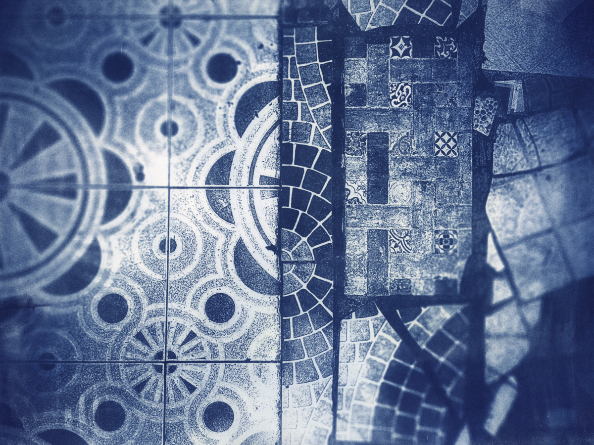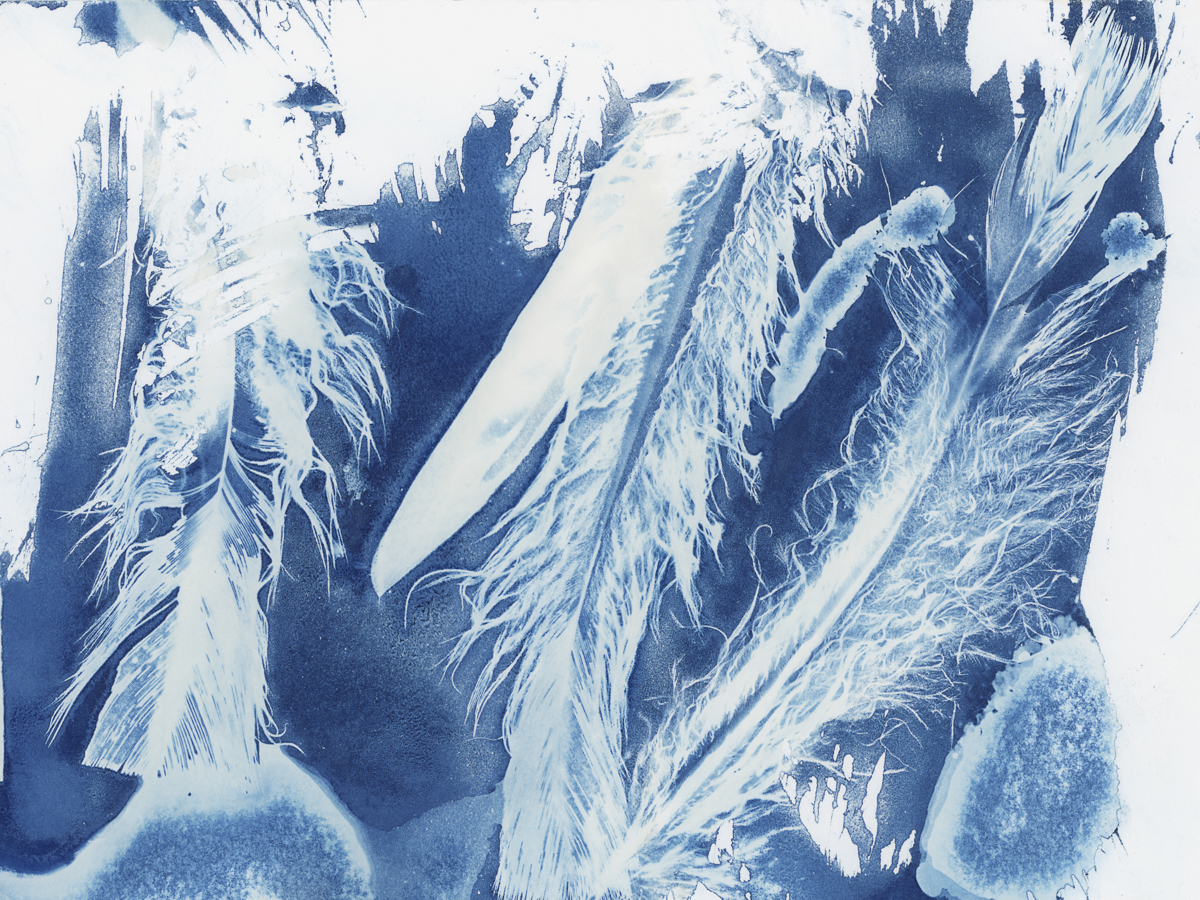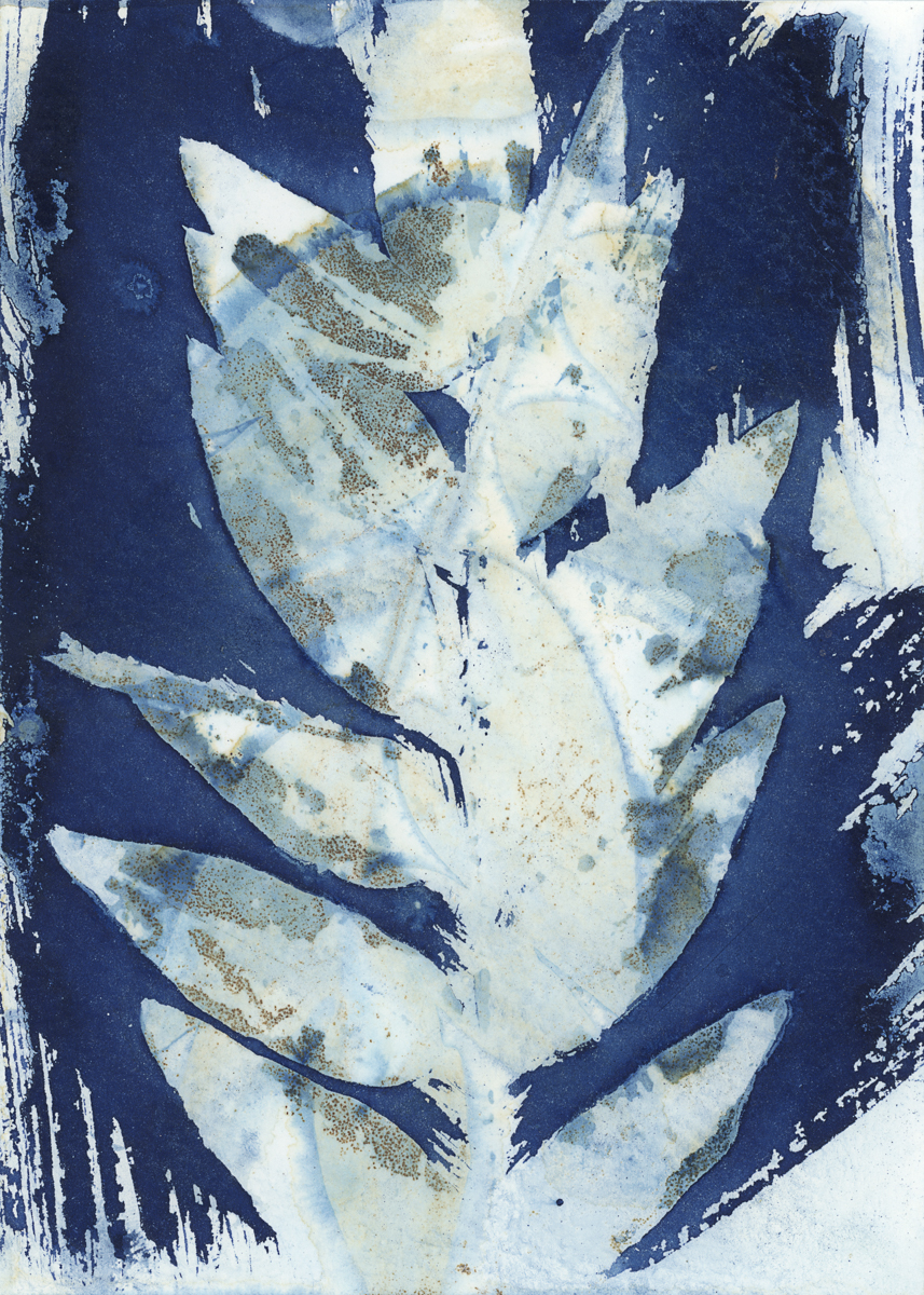 A work in progress of a collection of cyanotypes and other mixed media (2022)